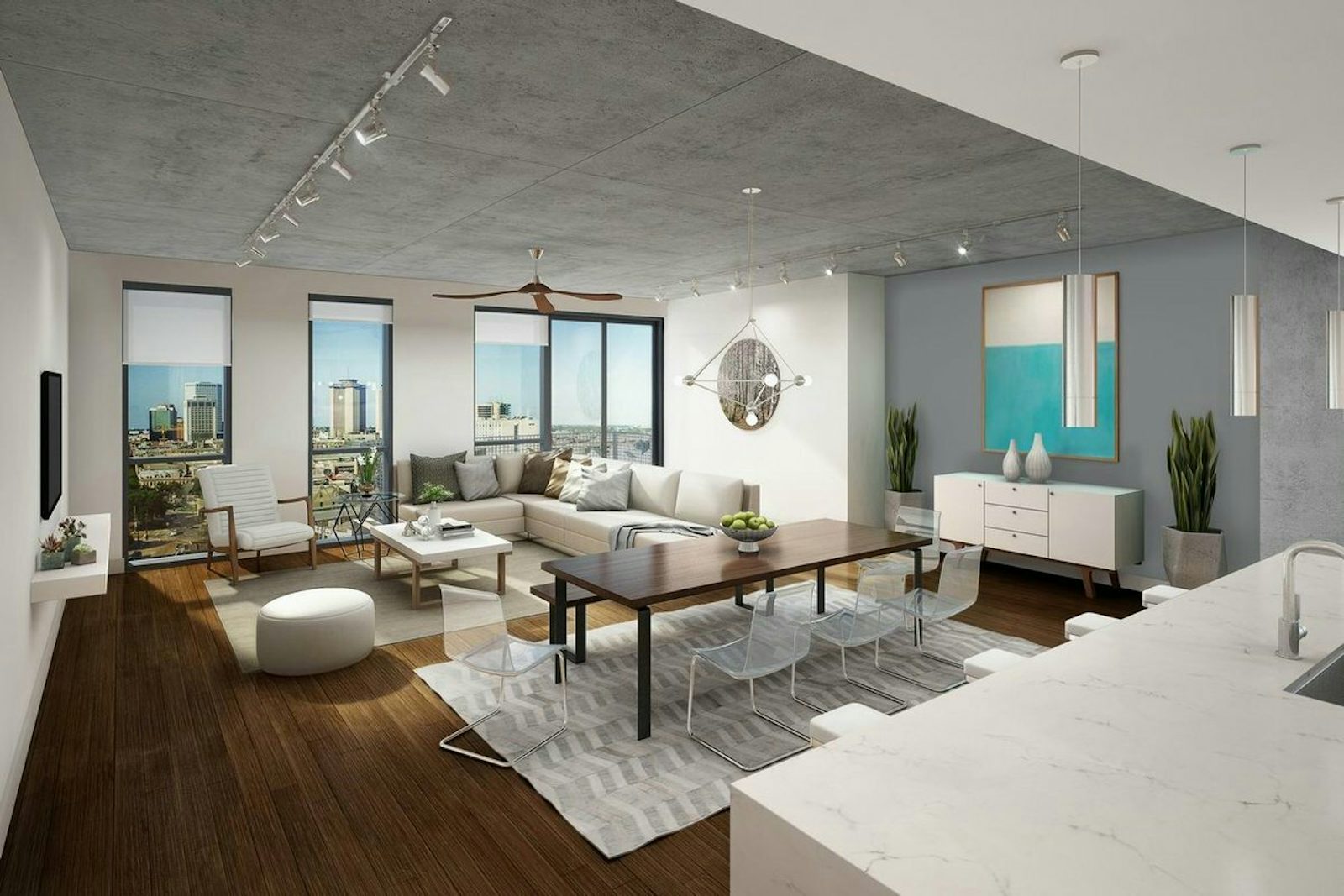1100 Annunciation is a new 16-story residential condo tower in New Orleans’ Warehouse District, which includes ample amenities such as a living green wall covered parking garage, street level retail and residential courtyard, and penthouse level amenities.