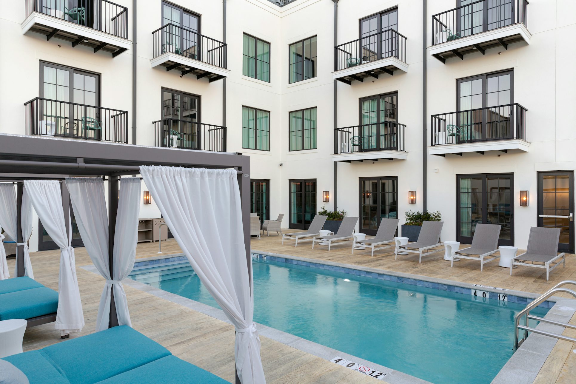 Transforming a previously vacant space in downtown Bay St. Louis, the newly constructed Pearl Hotel represents a significant milestone since Hurricane Katrina decimated the town in 2005. The 54,700 SF structure, strategically designed with an L-shaped layout, not only activates the waterfront scene but also maximizes outdoor views. The 59 guest rooms, arranged around an open-air courtyard featuring a swimming pool and hospitality room, immerse visitors in the coastal environment.